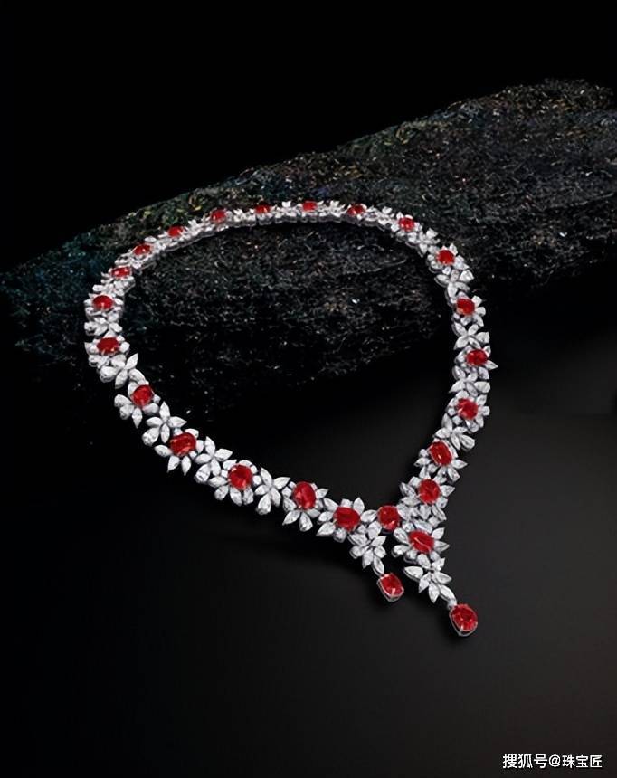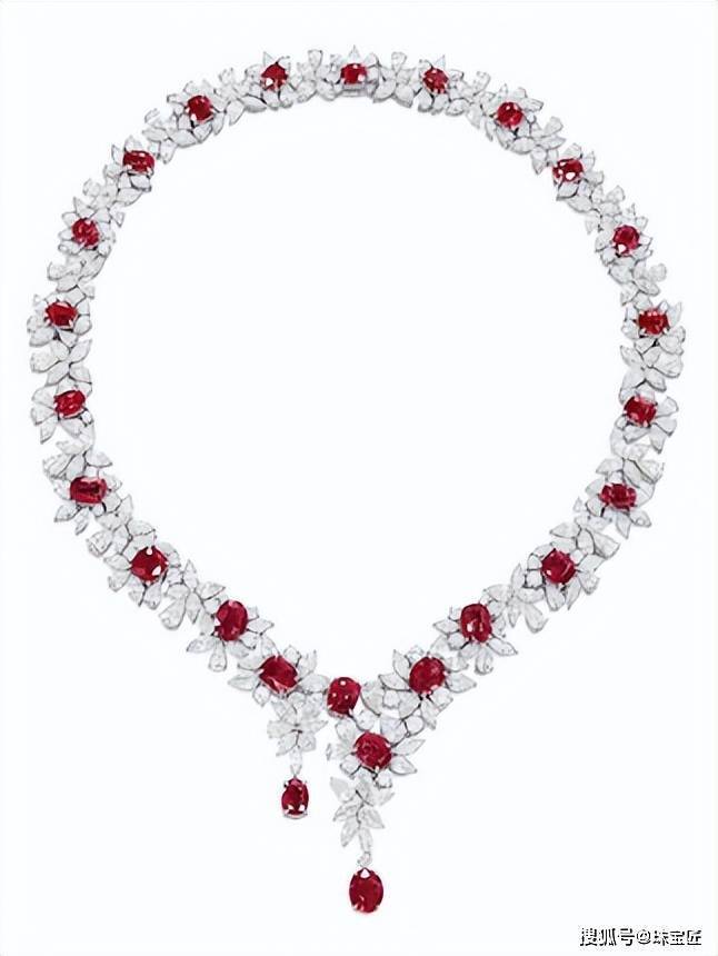 本季拍卖会宝石拍品中,成交价居于榜首的,是一条天然缅甸未加热处理红宝石钻石项链。