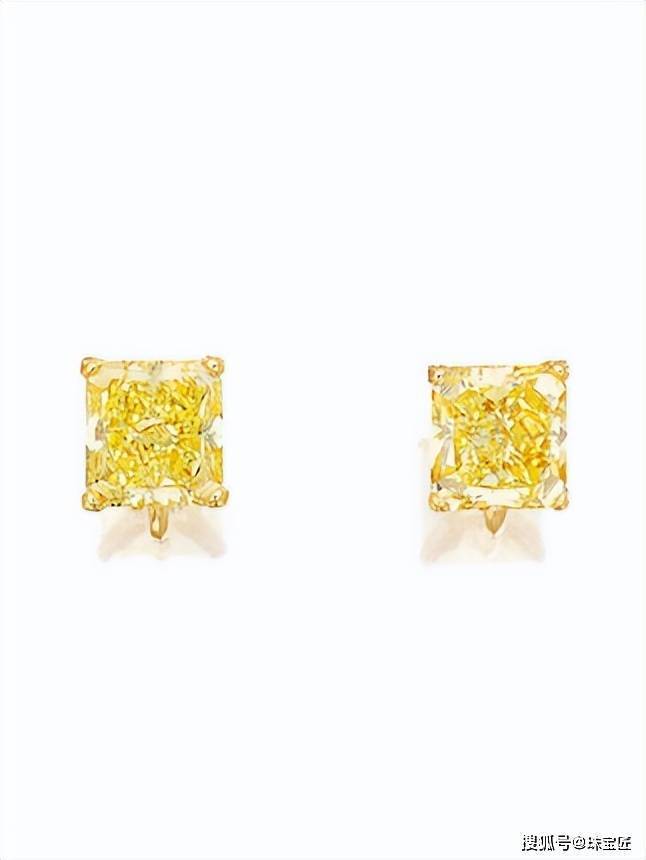 分别镶嵌一颗重10.98克拉和10.22克拉的光芒切割浓彩黄钻,并点缀以明亮式切割的浓黄色圆形钻石;带有法国Carvin检测标记;附2张美国宝石学会证书;