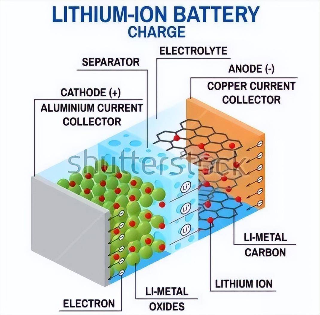 充电的时候,锂离子从这个通道离开正极;放电的时候,锂离子从这个通道回到正极。