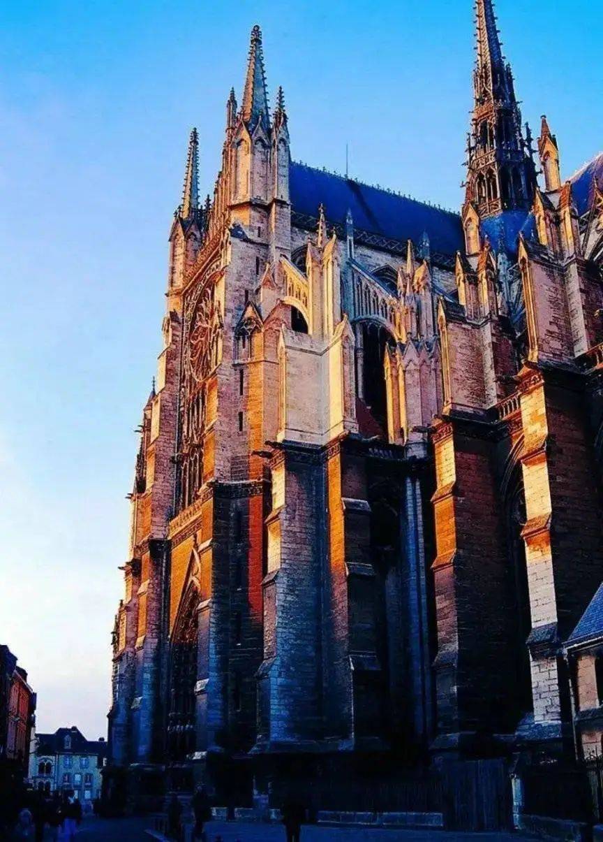 完美的亚眠大教堂,外观为尖形的哥特式建筑,墙壁几乎全被每扇12米高的彩色玻璃窗代替,几乎看不到墙面,堪称建筑史上的奇观。