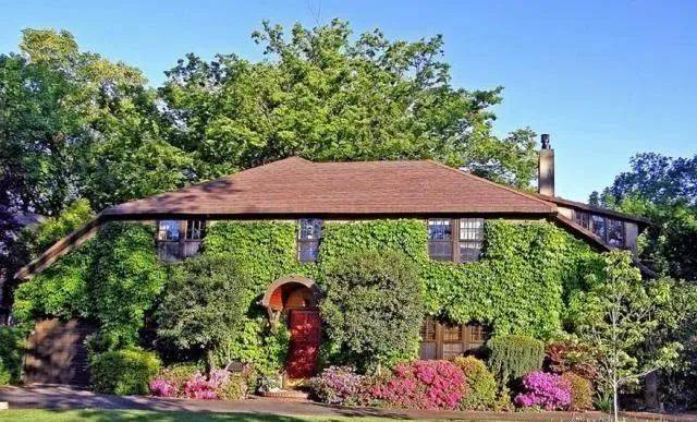 很多主人喜欢在自己的房子周围种植攀爬植物,如常春藤、葡萄藤、爬山虎等。当这些绿色的植物爬满整个墙壁,就会使房屋看起来神秘且有趣。