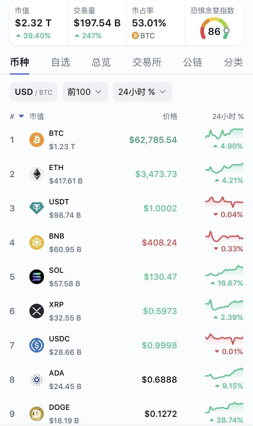 截至发稿前,比特币24小时内涨超4.9%,以太坊24小时内涨超4.2%。