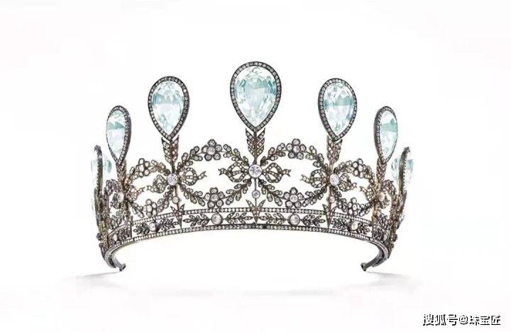 这顶冠冕上的海蓝宝石颜色清新典雅,古典柔美。