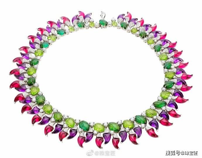 宝格丽认为,相比于切割面璀璨的刻面宝石,未经过复杂雕刻手法的弧面型宝石,更接近宝石本身的质感。所以,在宝格丽的设计中,大颗的弧面型宝石被频繁使用。