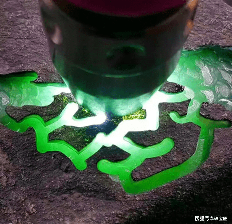而最“高级”的被“玩出花”来的翡翠原石染色,是把翡翠原石掏心涂色。