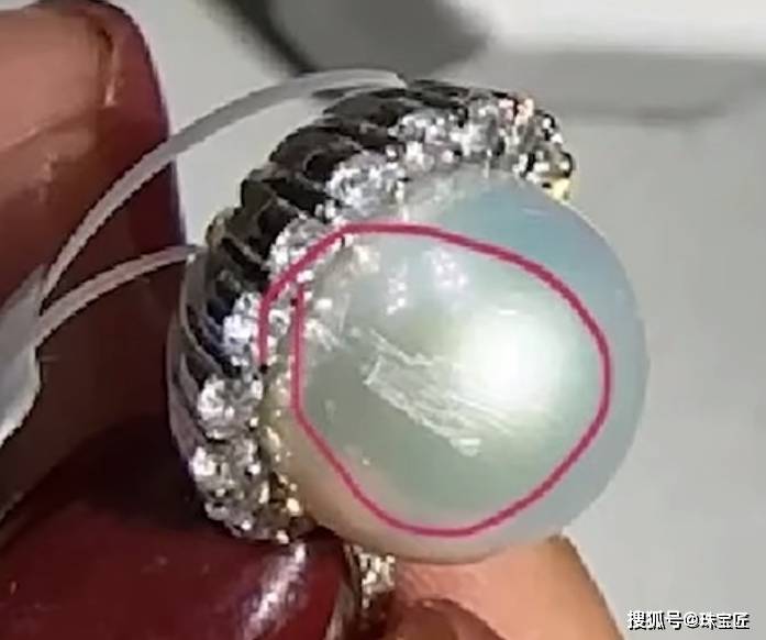 因为本身的晕彩和伴彩很丰富,珍珠表面稍有划痕,就像豆腐上面落了灰一样,很尴尬。