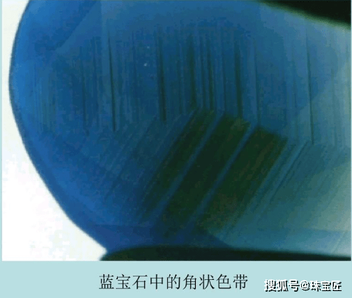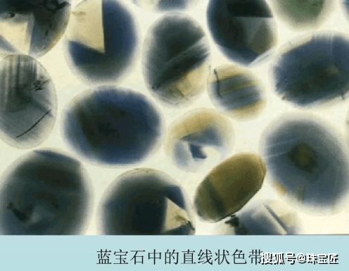 色带是蓝宝石中同生的非物质性包体,实际上反映了宝石从小到大的生长轨迹。