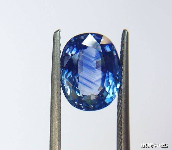 而有些蓝宝石,侧面才能观察到明显色带,台面上看颜色相对均匀,这种蓝宝石往往会具有性价比。