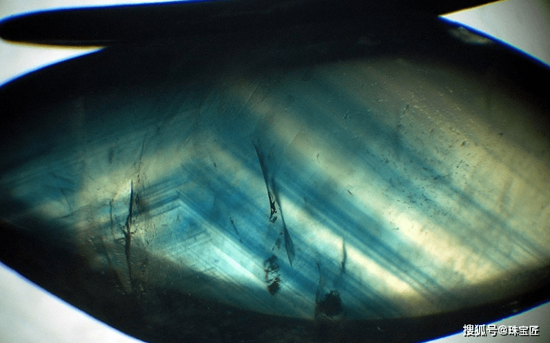 蓝宝石中一些色带是肉眼明显能观察到的色带,还有一些是需要仔细放大观察才可见的色带。
