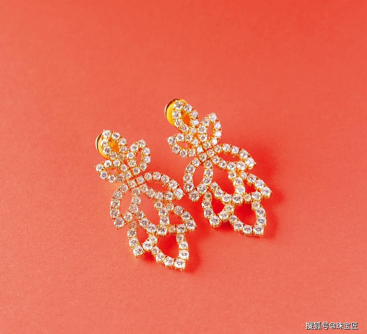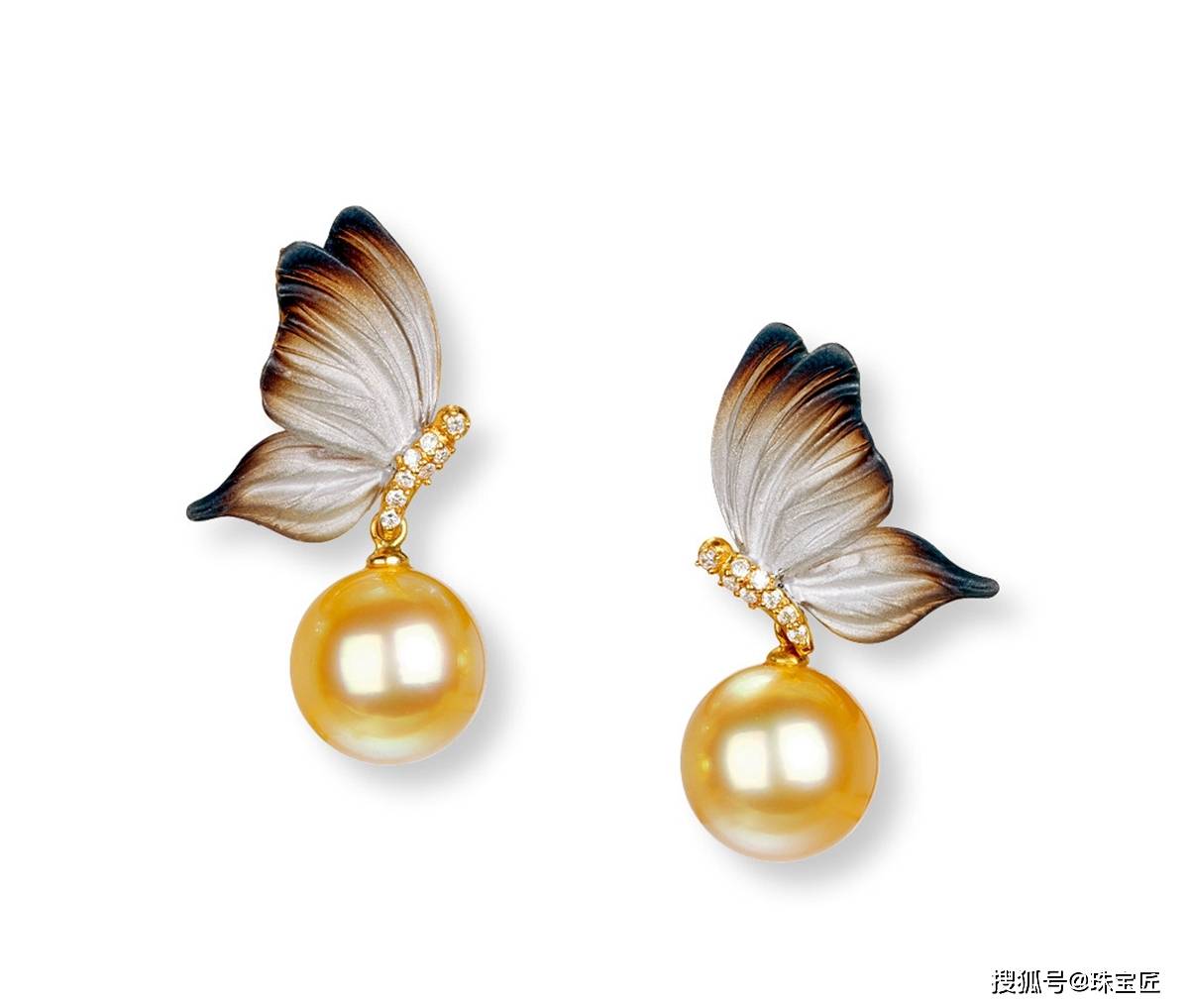 18K金镶金珠蝴蝶耳环,对称造型富贵典雅,尺寸31.7×13.4mm,总重8.8克。