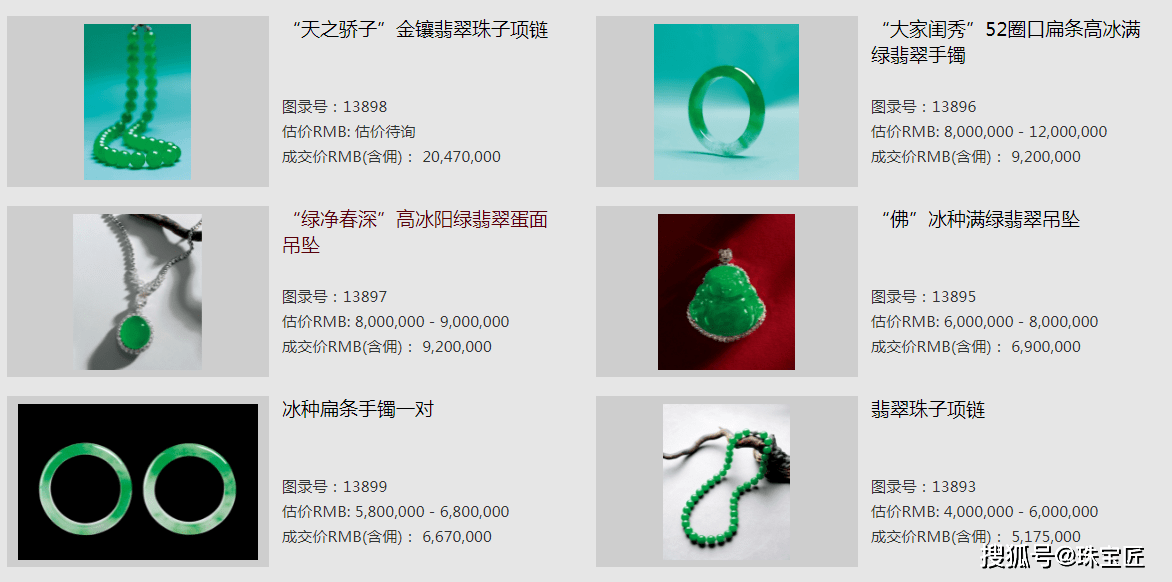 其中,这条名为“天之骄子”金镶翡翠珠子项链,成交价居于榜首,是当之无愧的“赢家”拍品。