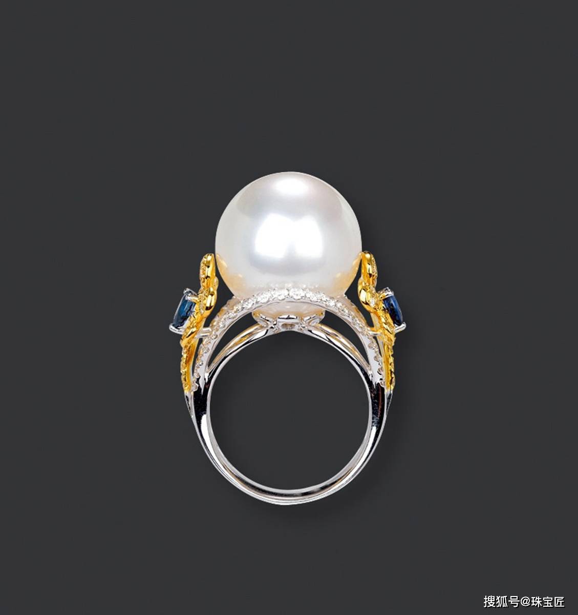 • 15.8mm海水澳白珍珠配蓝宝石戒指