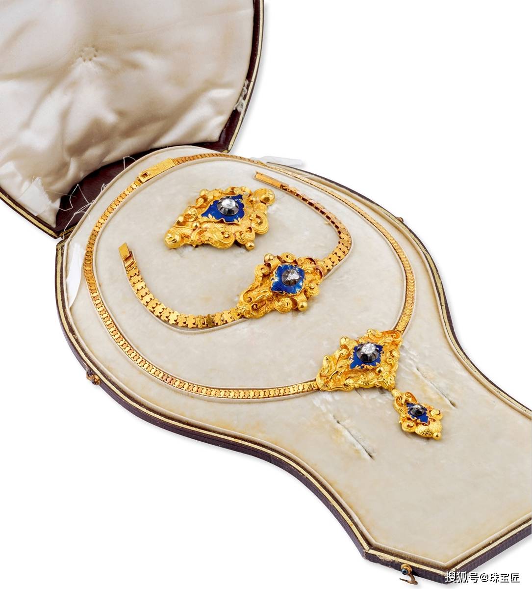• 波旁王朝 金镶珐琅钻石手链胸针项链套组