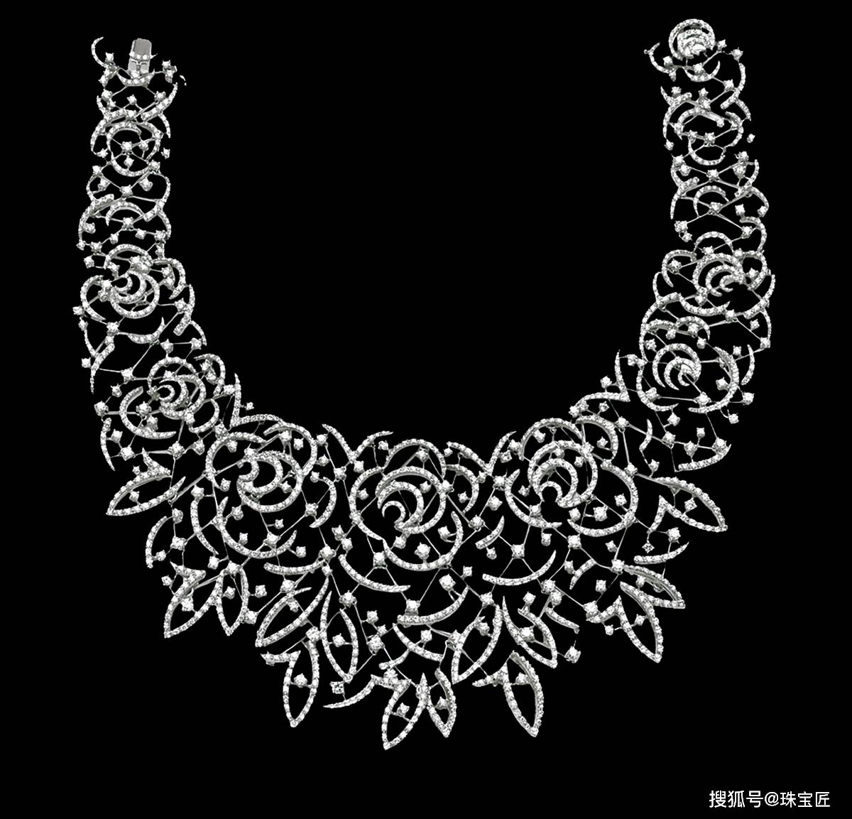 “玫瑰人生Le Vie en Rose”金镶钻石项链,共由1411颗钻石镶嵌而成,重28.52克拉;