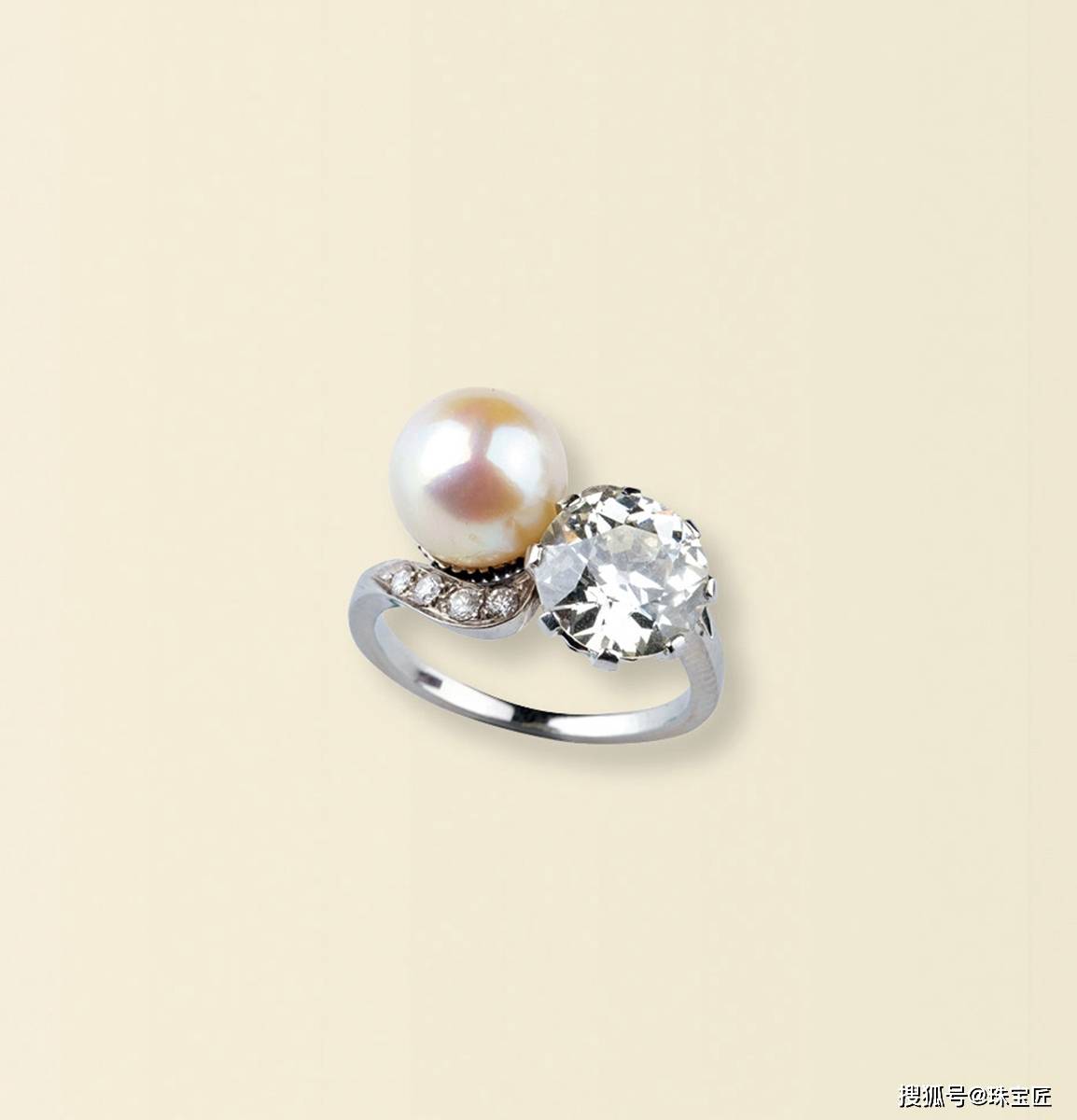 • 海螺珠配钻石戒指