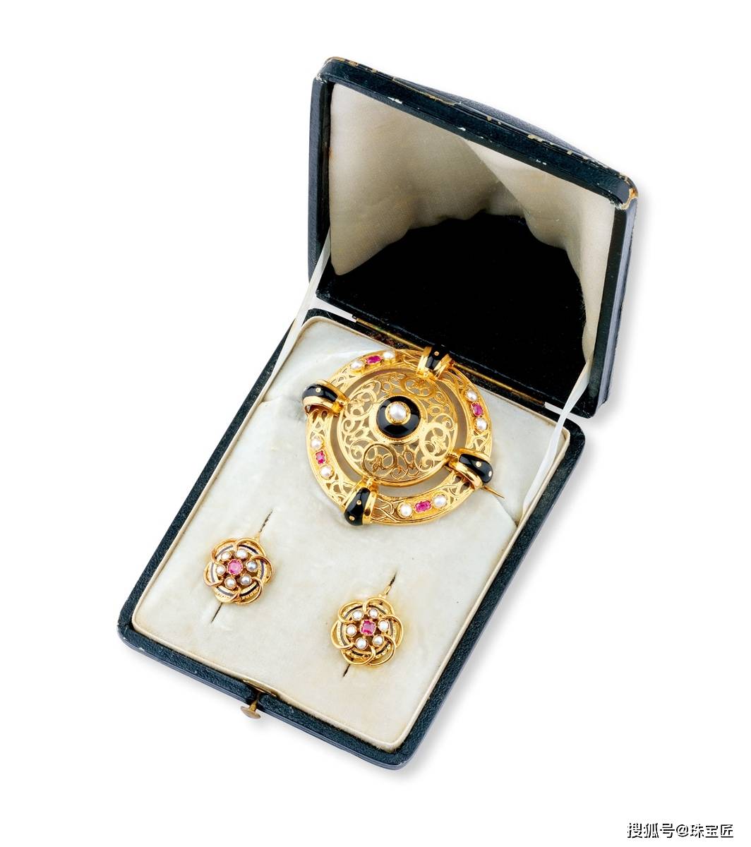 • 拿破仑三世 金镶珍珠胸针耳环套装