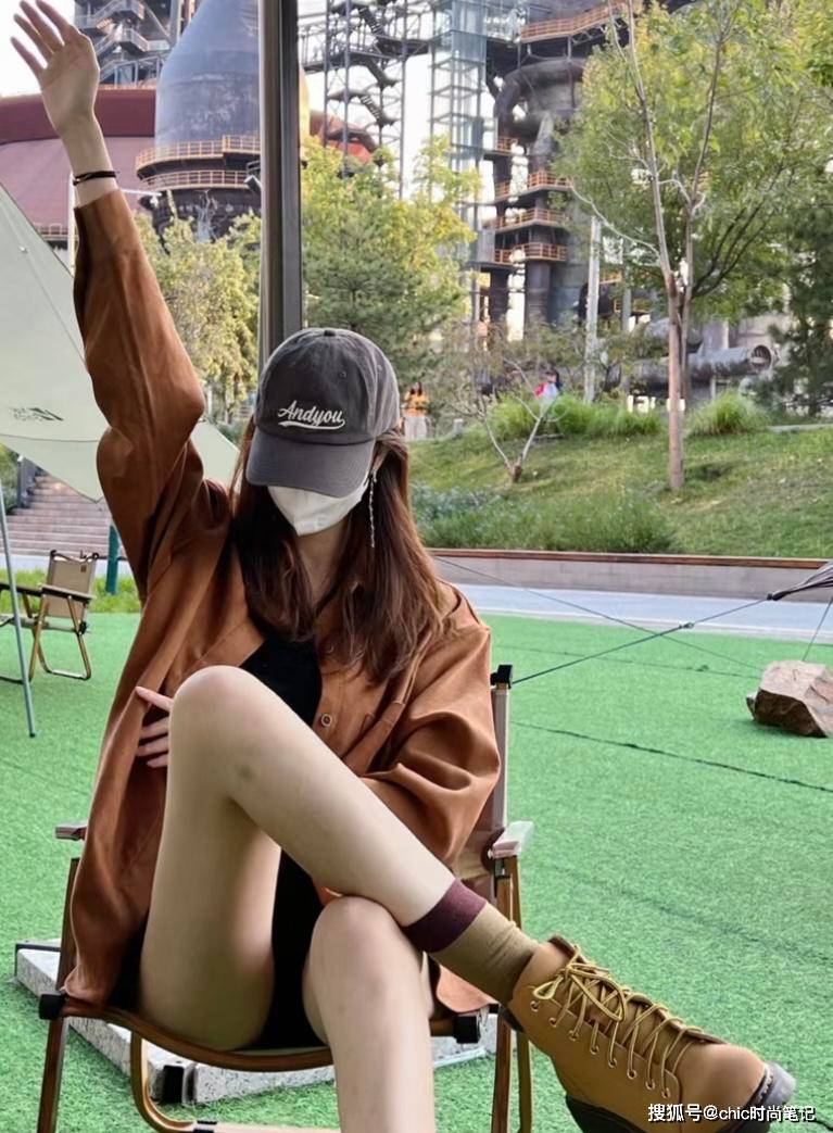 宽松长版衬衫很轻松打造出下半身失踪的氛围感穿搭,鞋子可以选择棕色系列的马丁靴或者皮靴,更有秋天的感觉,喜欢中性风的姐妹也可以在配饰上选择深色鸭舌帽或者牛仔帽,再配上一款帅气的斜挎包,都市慵懒风get。