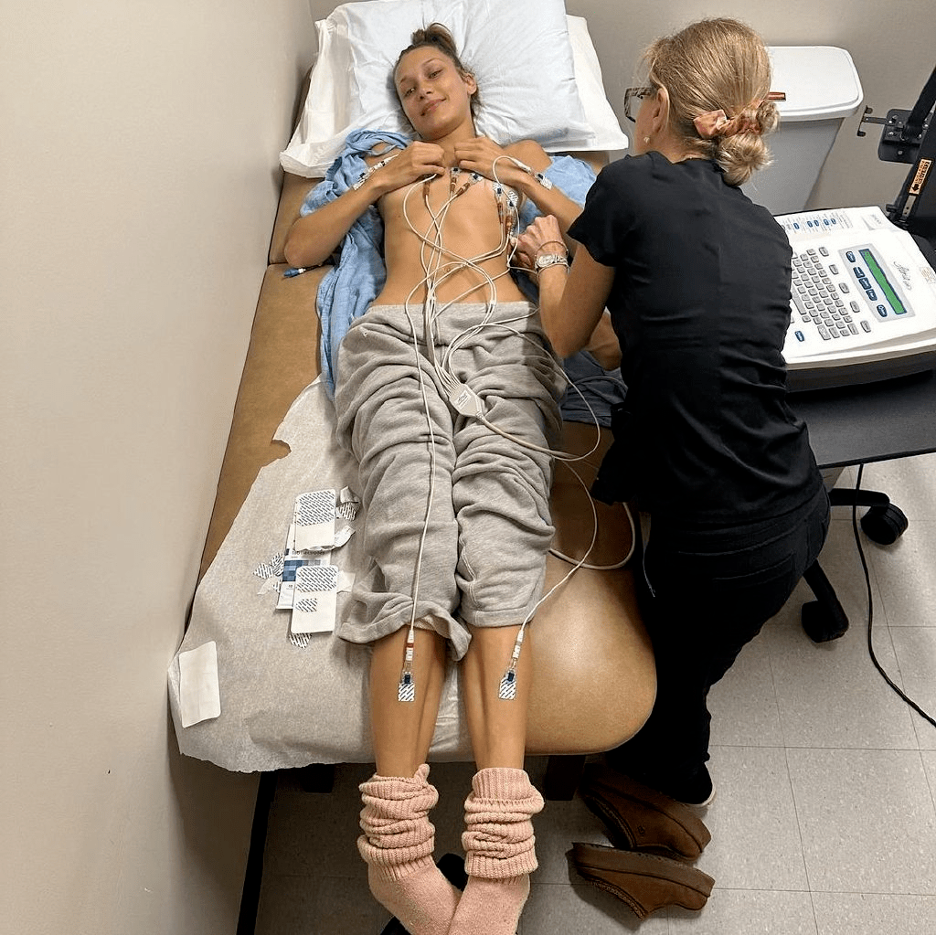 不难看出治疗中的Bella真的状态很差,脸上几毫无血色,让人很难跟T台上气场十足的超模联想在一起。