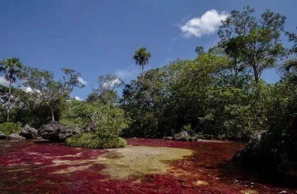 热带的雨季期间,水流速度快,河水过深,河底模糊,旱季,没有足够的水来支持琳琅满目的河中植物。但是,在每年九月至十一月几个星期的干雨季交替之际,都会生长出数量惊人、色彩多样的水藻,加上河中特有的水生红色植物非常茂盛,范围延绵约100公里,为这条明净清澈的河流添上缤纷多变色彩,成了名副其实的“彩虹河”。